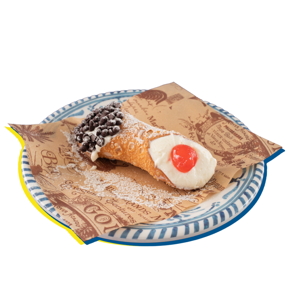 Scorza di cannolo, ricotta di pecora, gocce di cioccolato, frutta candita