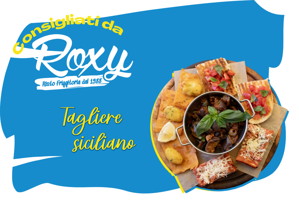 Panelle e crocché, bruschette al pomodoro, sfincione, caponata di melanzane.