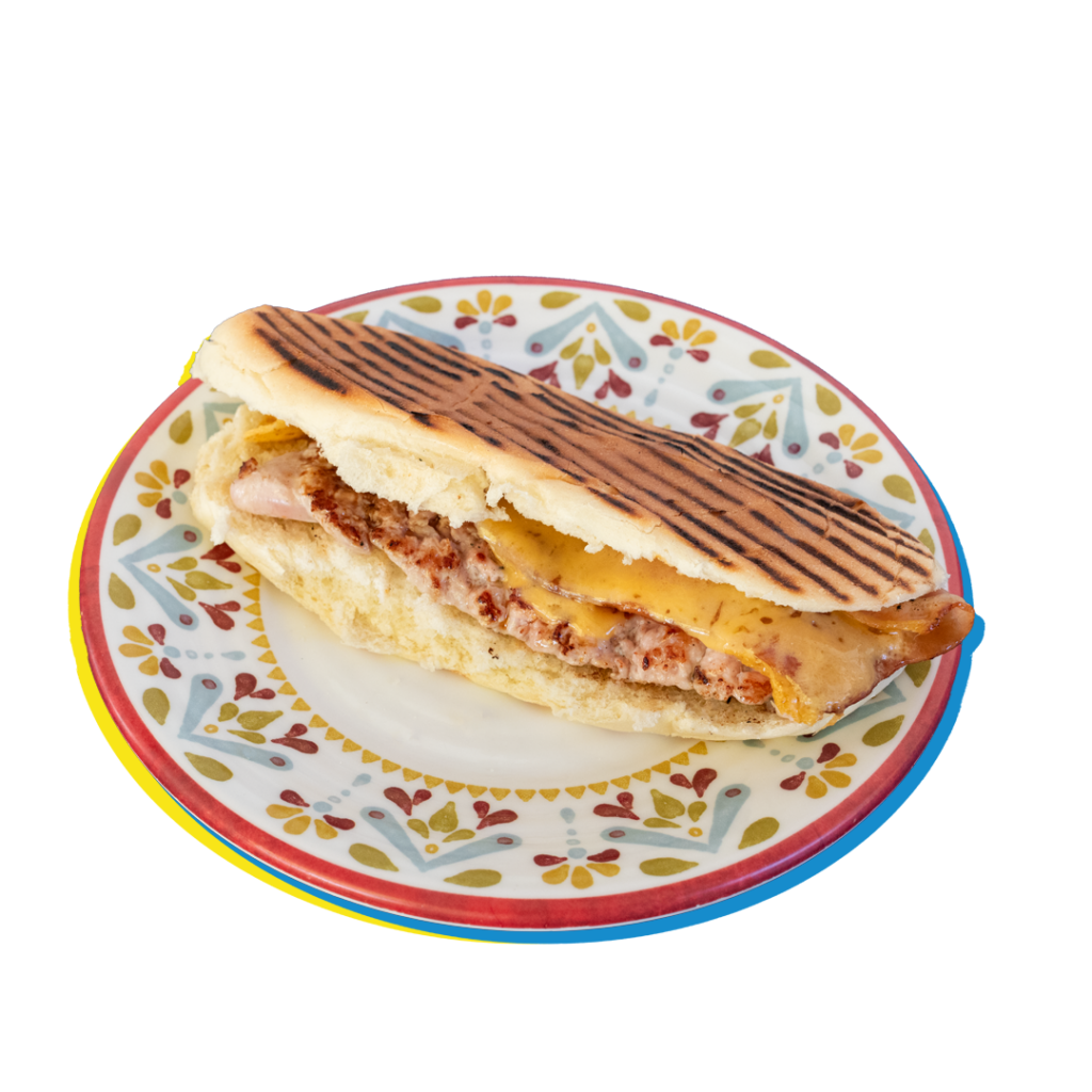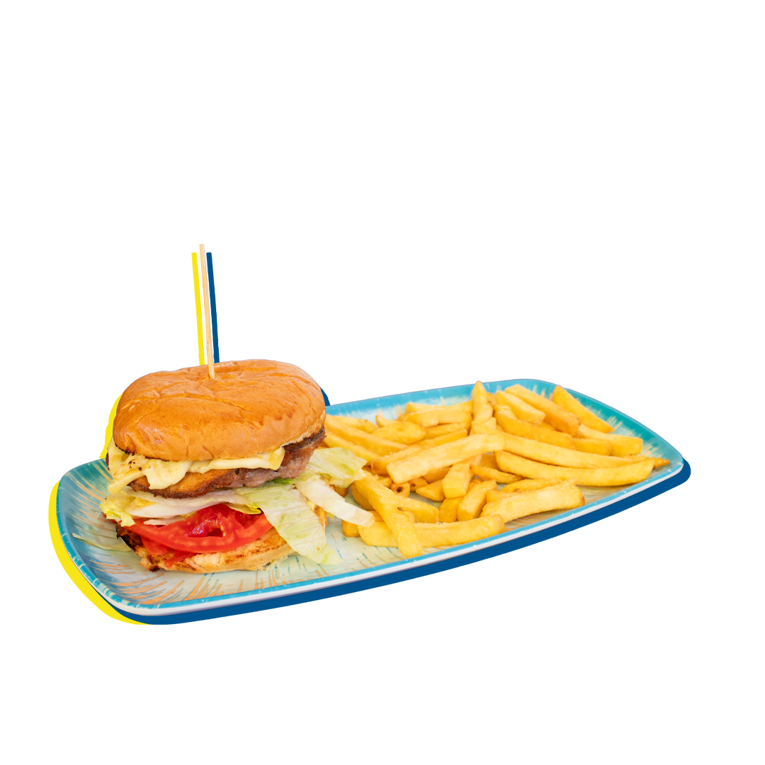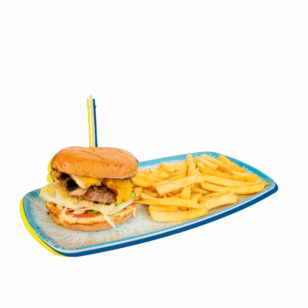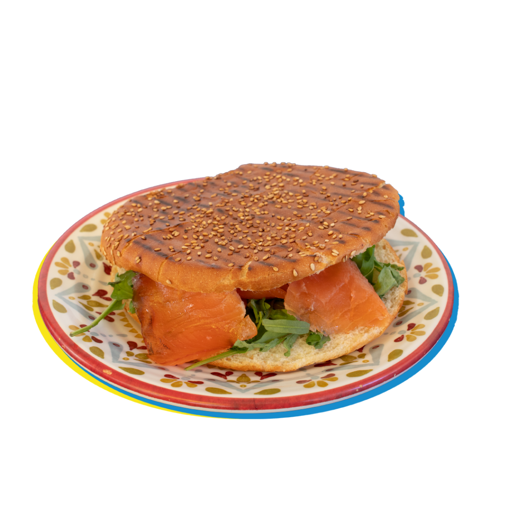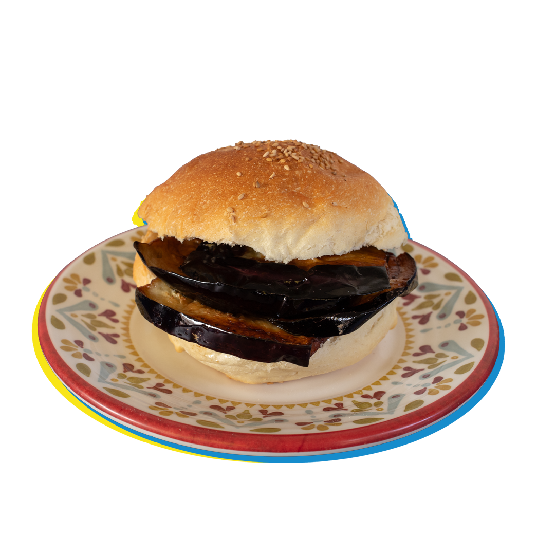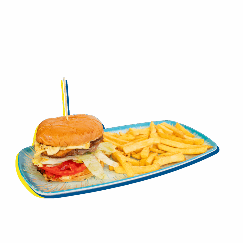 Bun Artigianale, Hamburger da 150g, lattuga, cipolla cotta, bacon, pomodoro