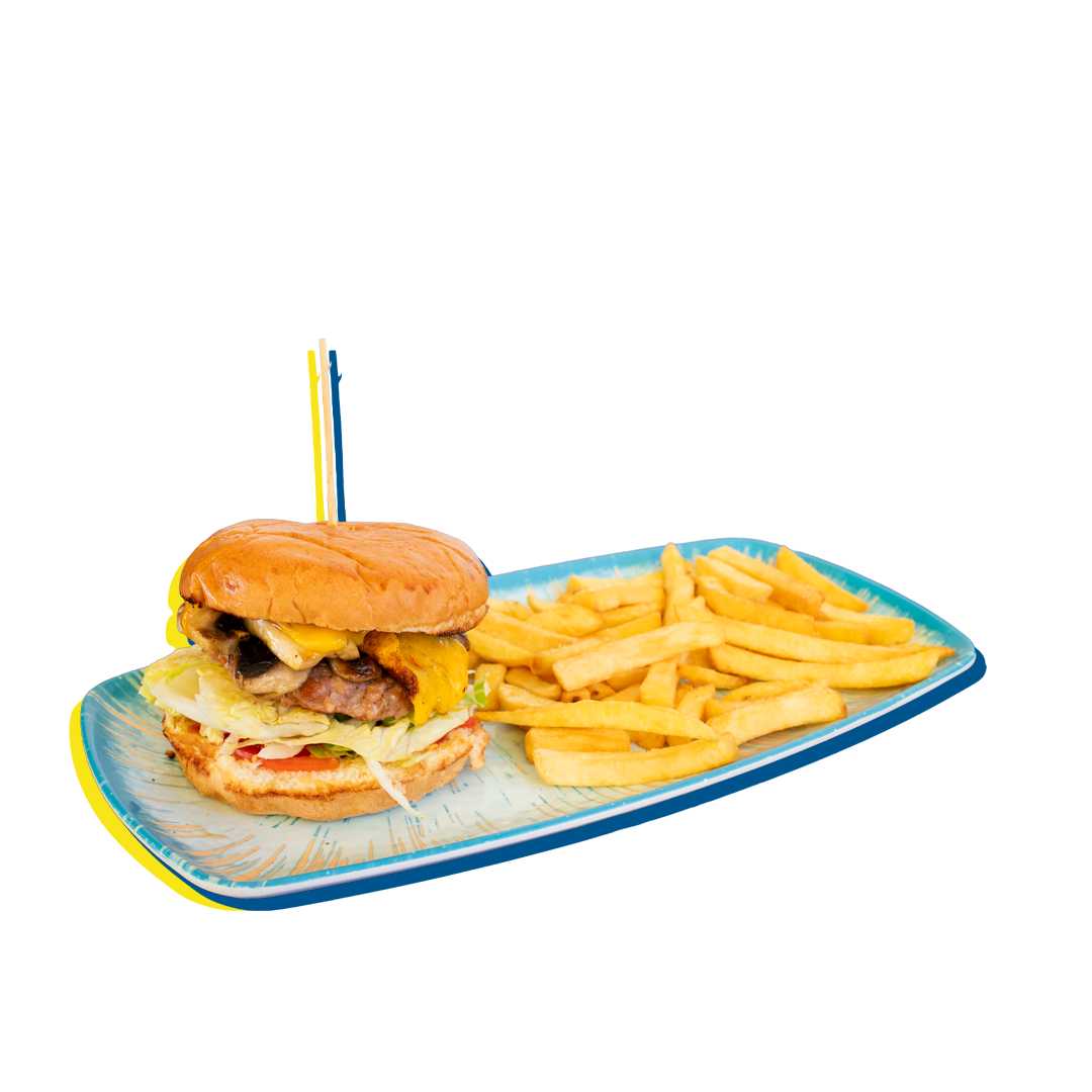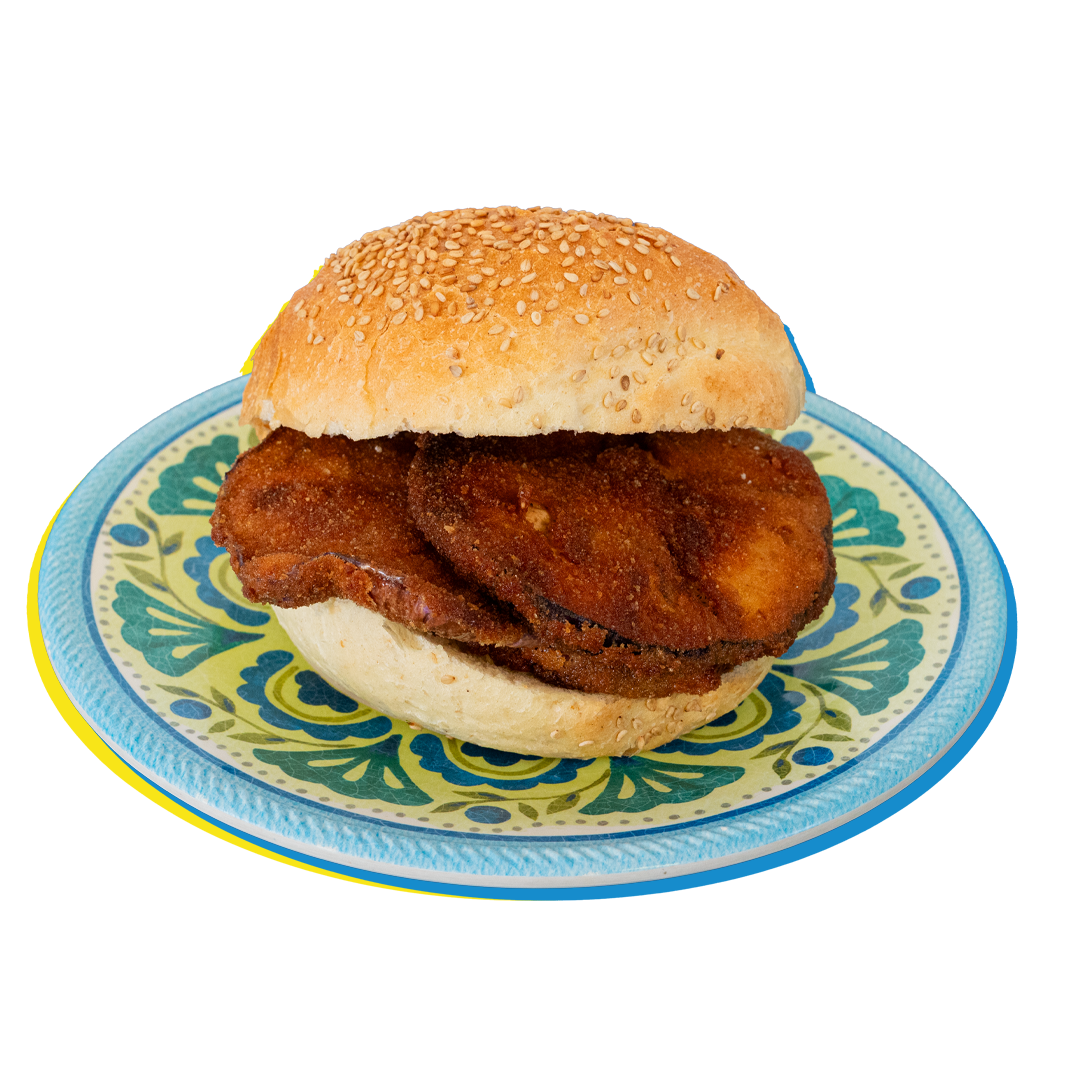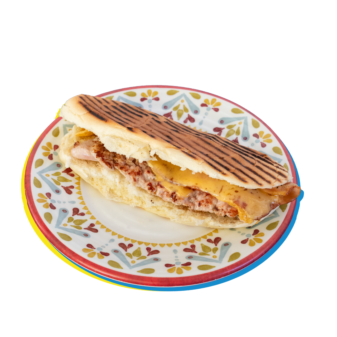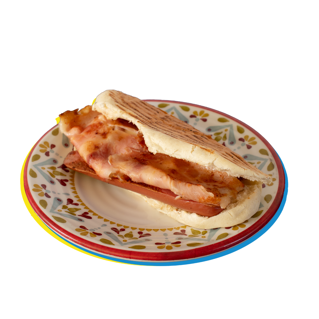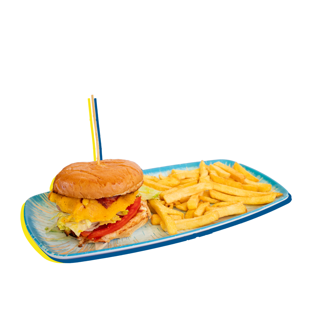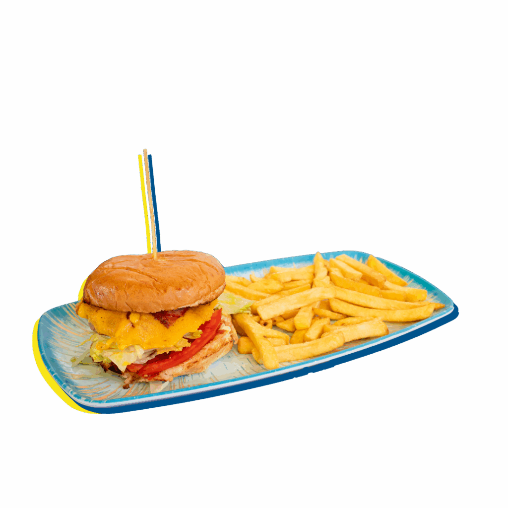 Bun Artigianale, Hamburger da 150g, lattuga, cipolla cotta, bacon, pomodoro