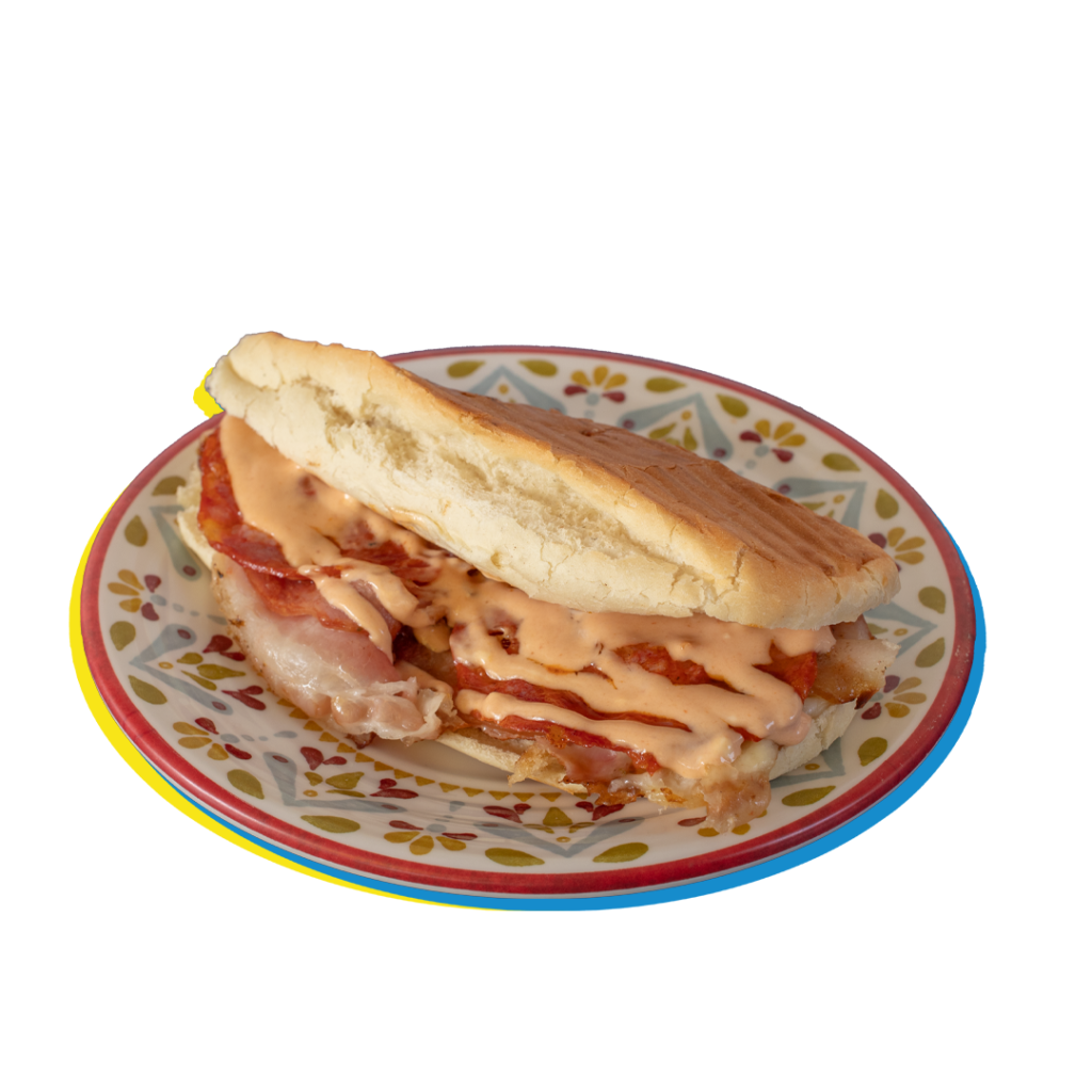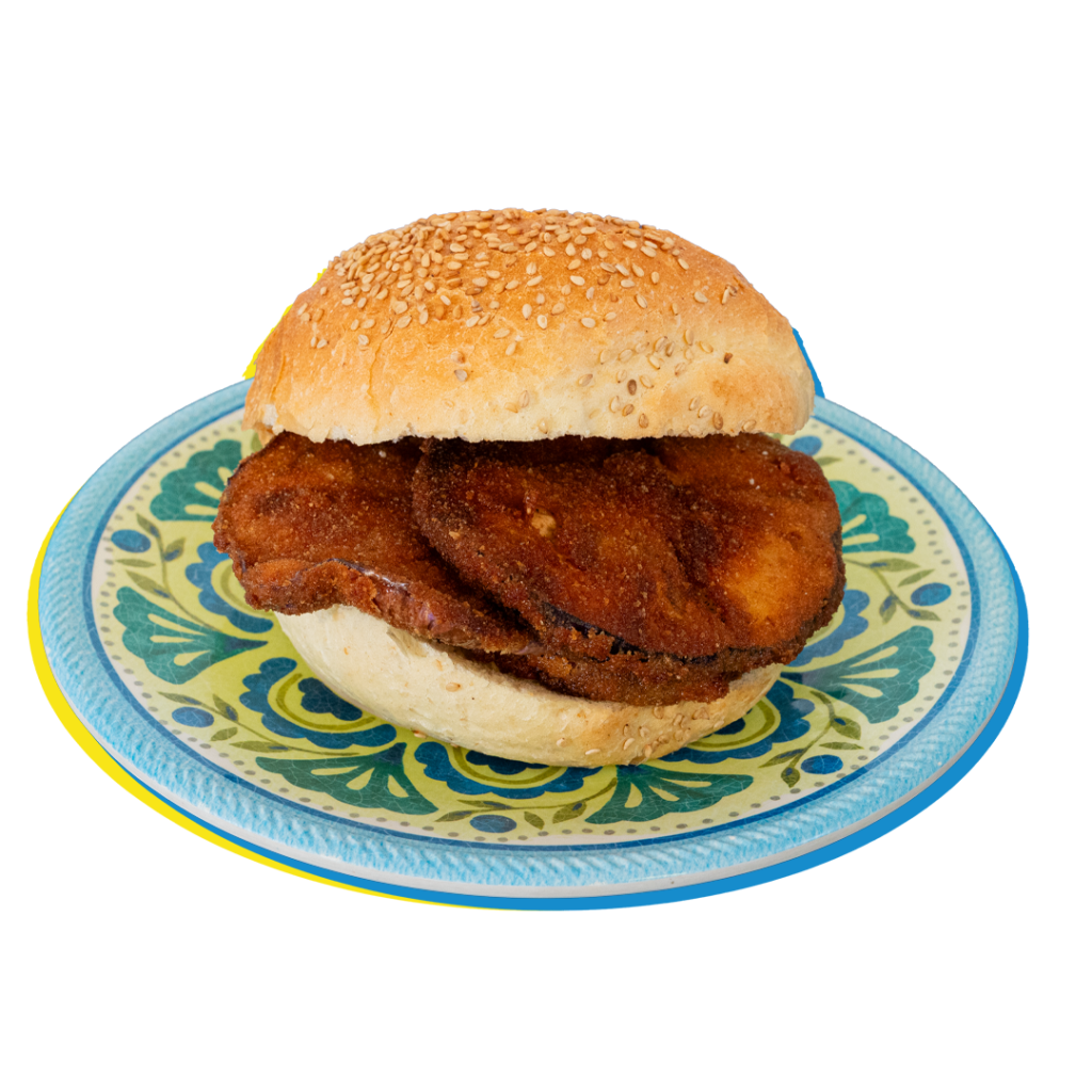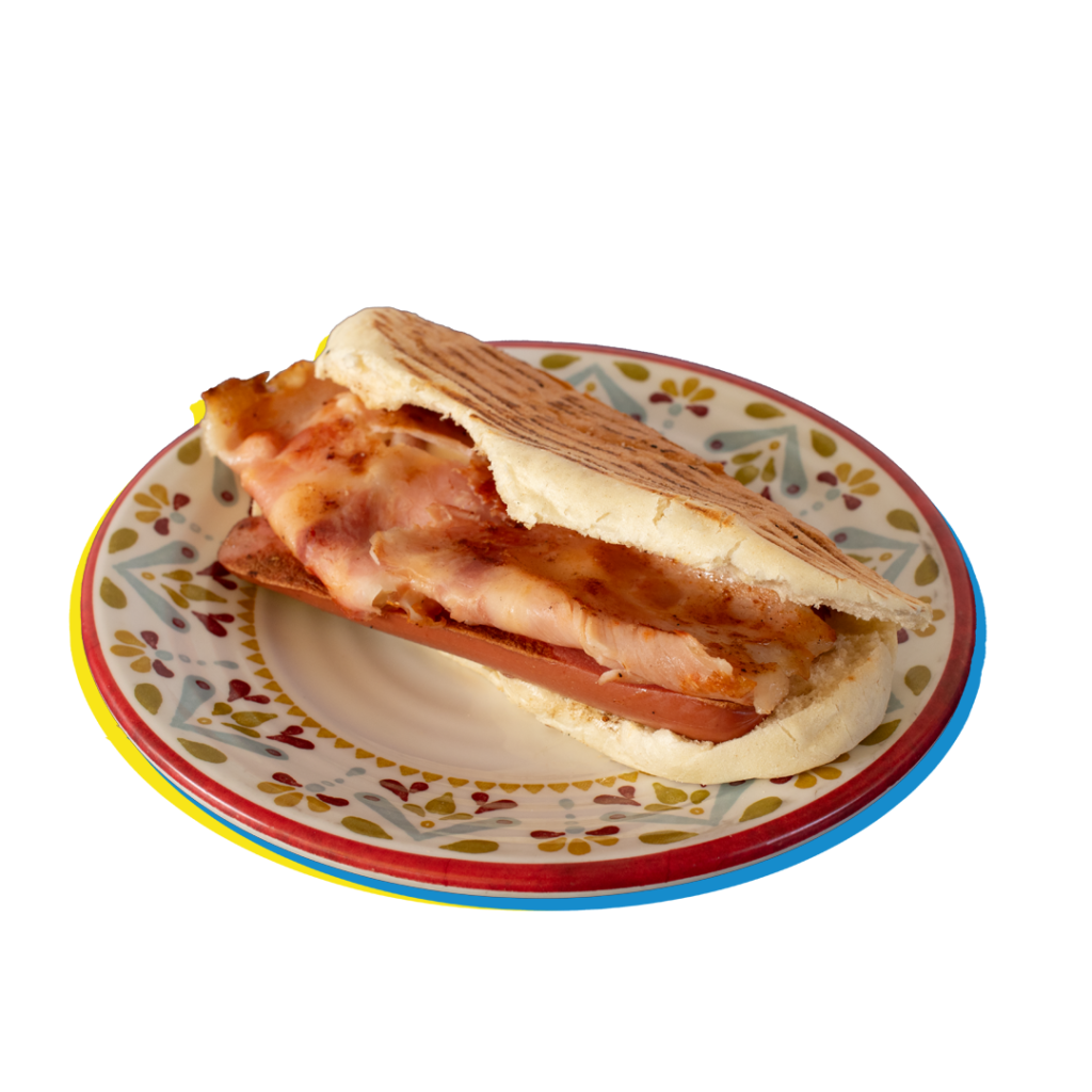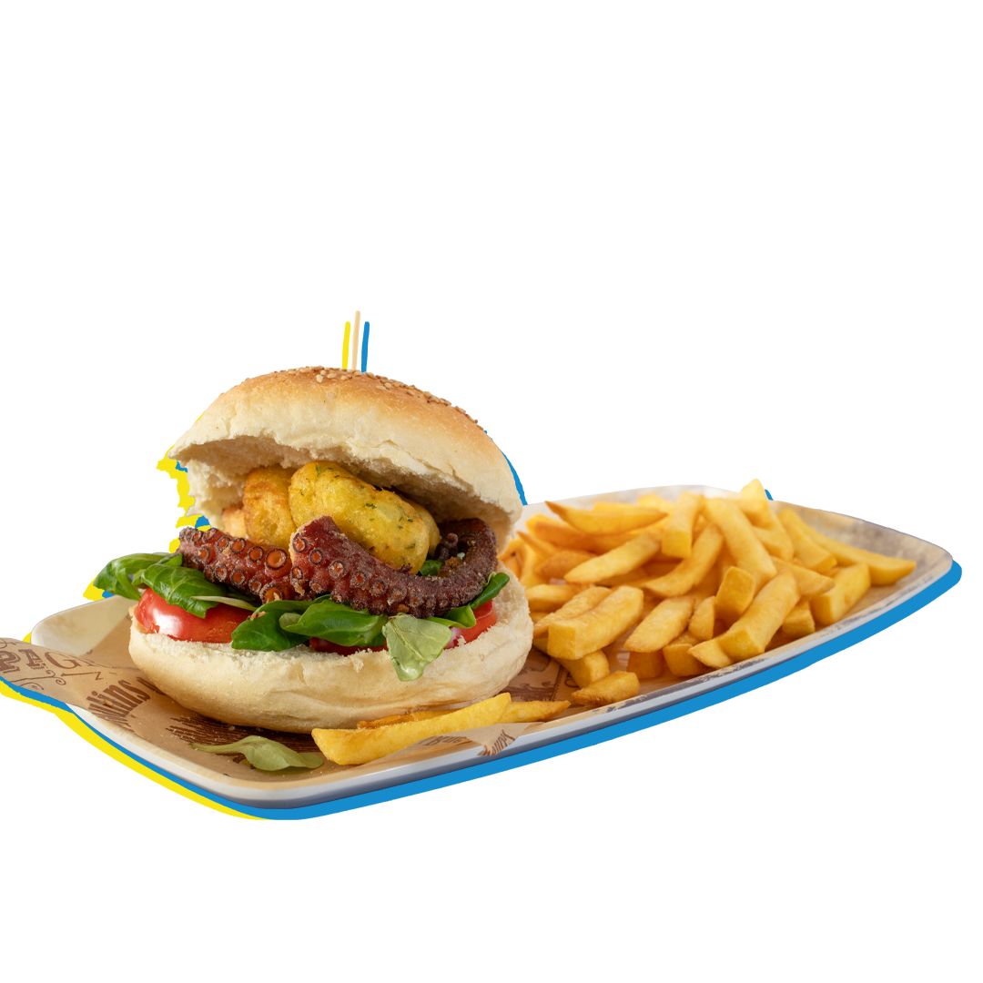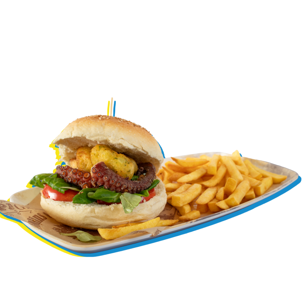 Bun Artigianale, Hamburger da 150g, lattuga, cipolla cotta, bacon, pomodoro