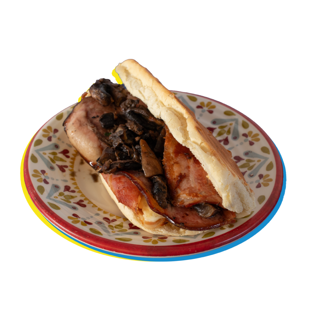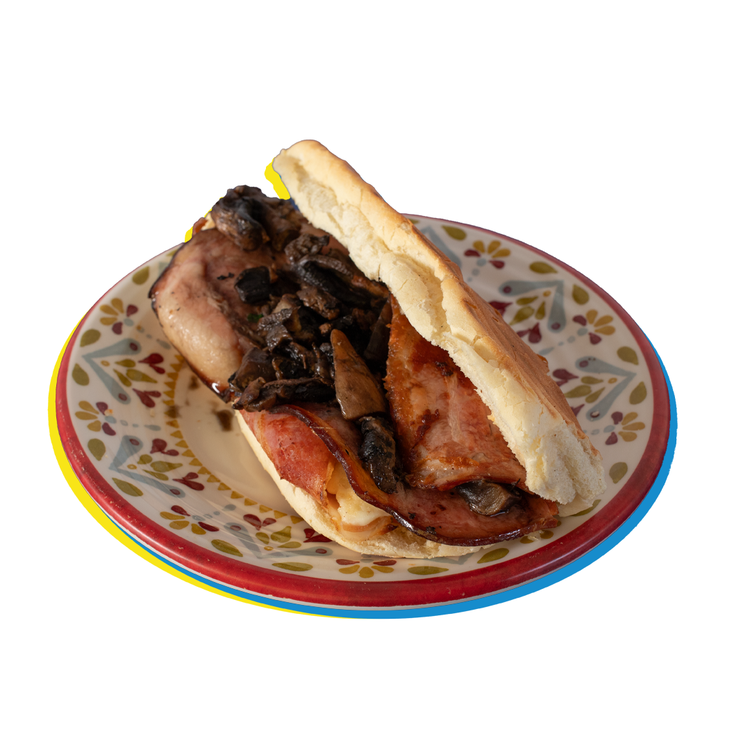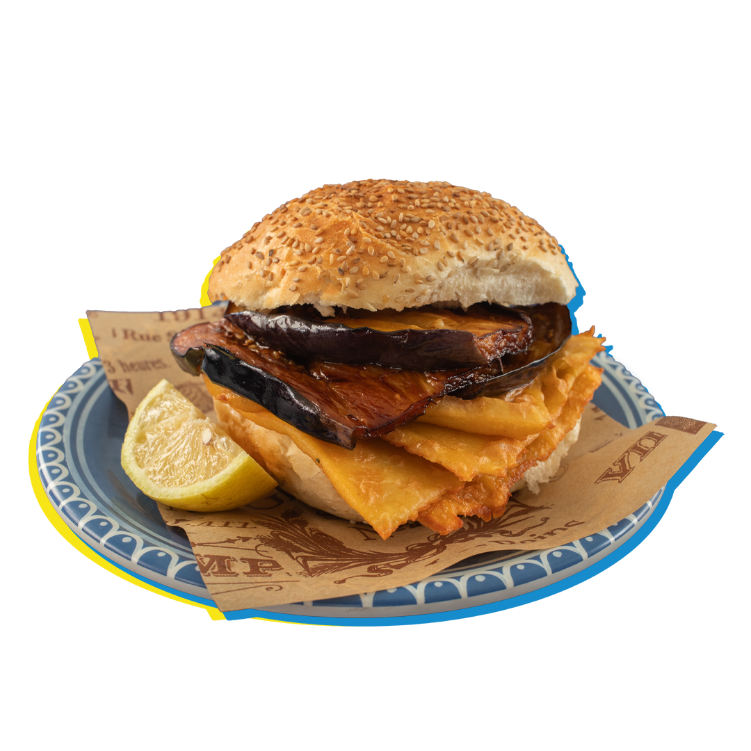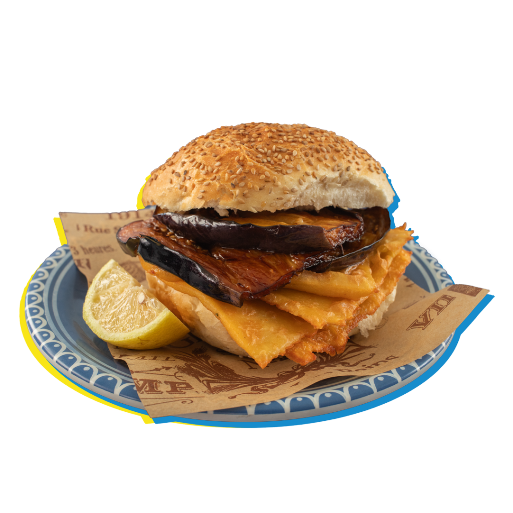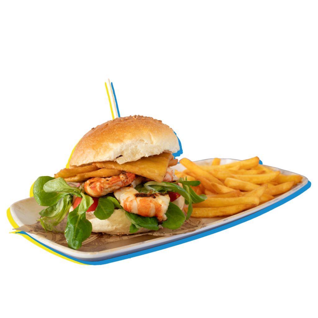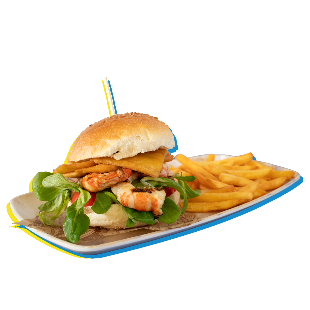 Bun Artigianale, Hamburger da 150g, lattuga, cipolla cotta, bacon, pomodoro