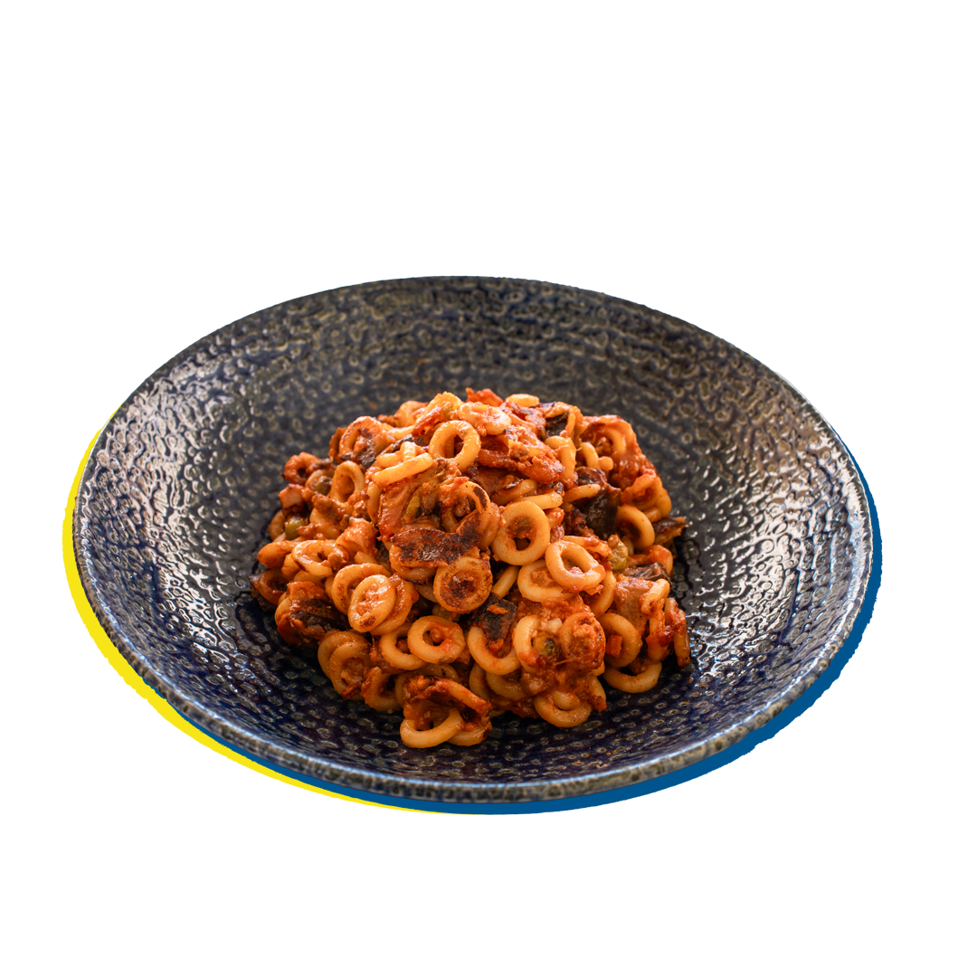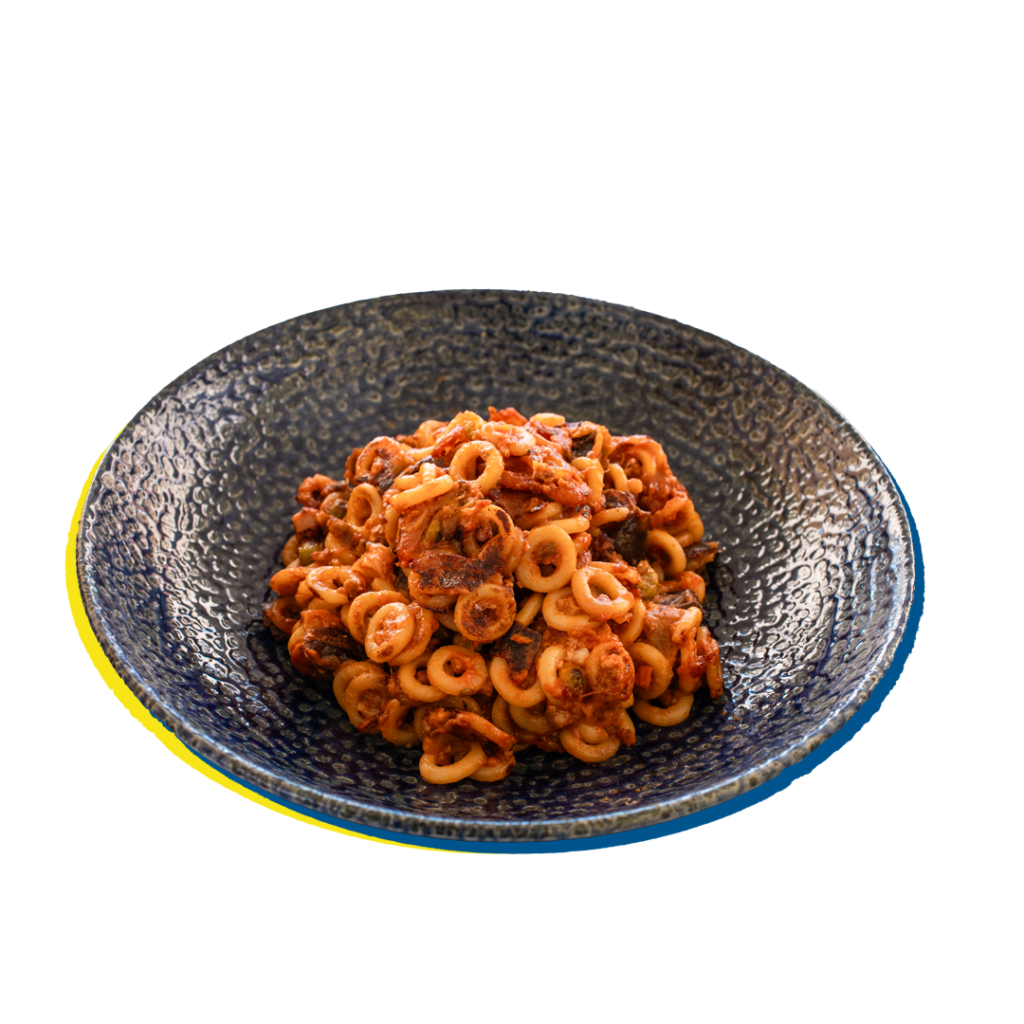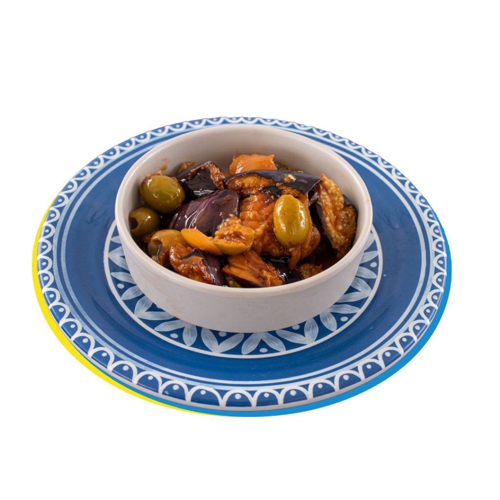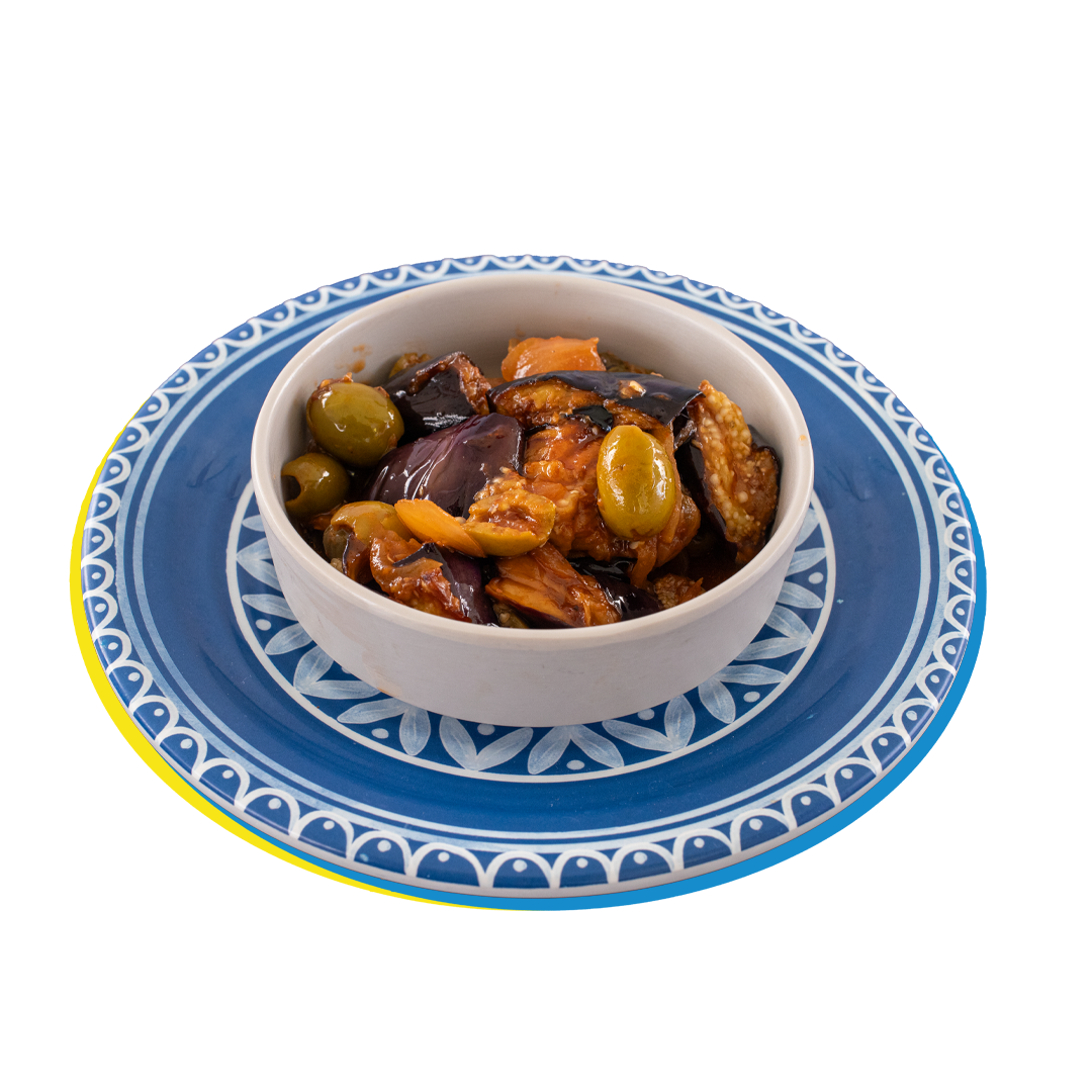 melanzane, capperi, olive, sedano, pomodoro, aceto, cipolla