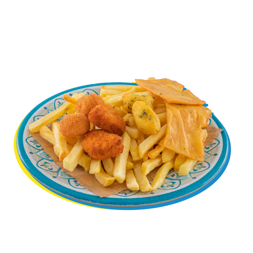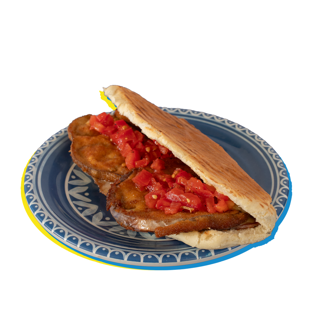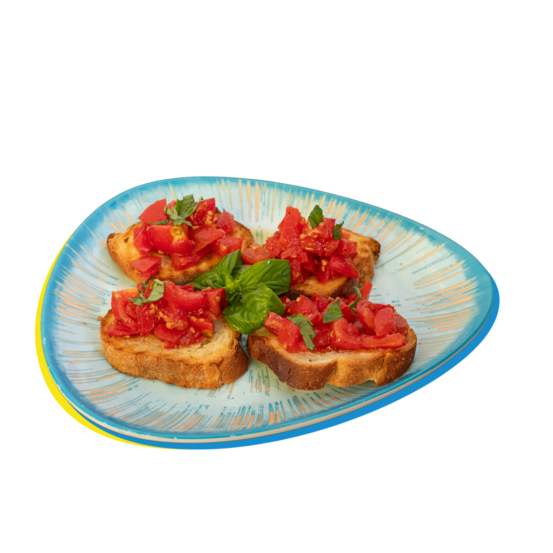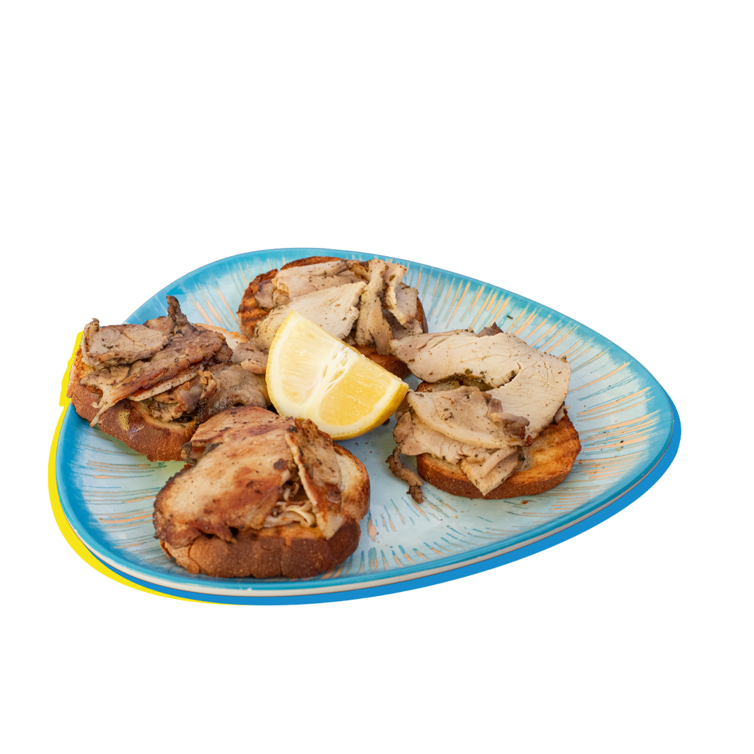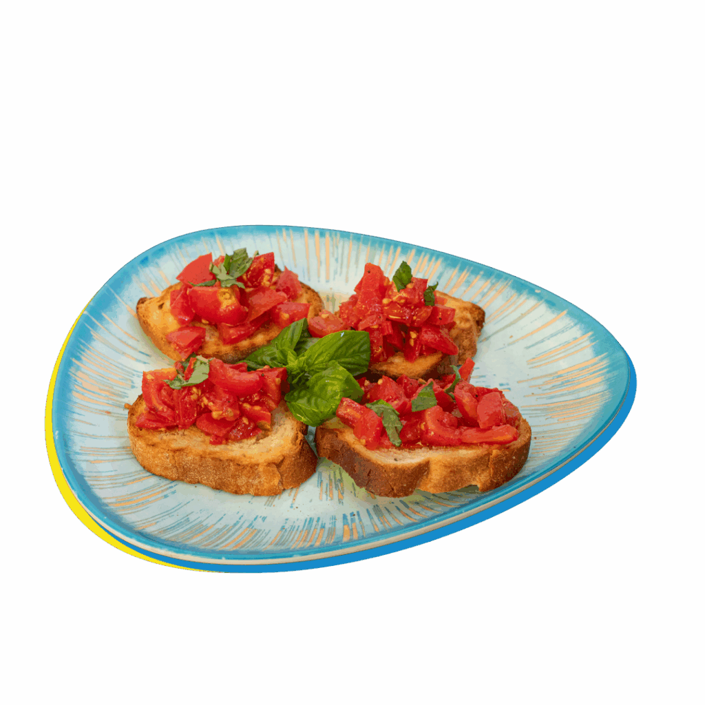 Panelle e crocché, bruschette al pomodoro, sfincione, caponata di melanzane.