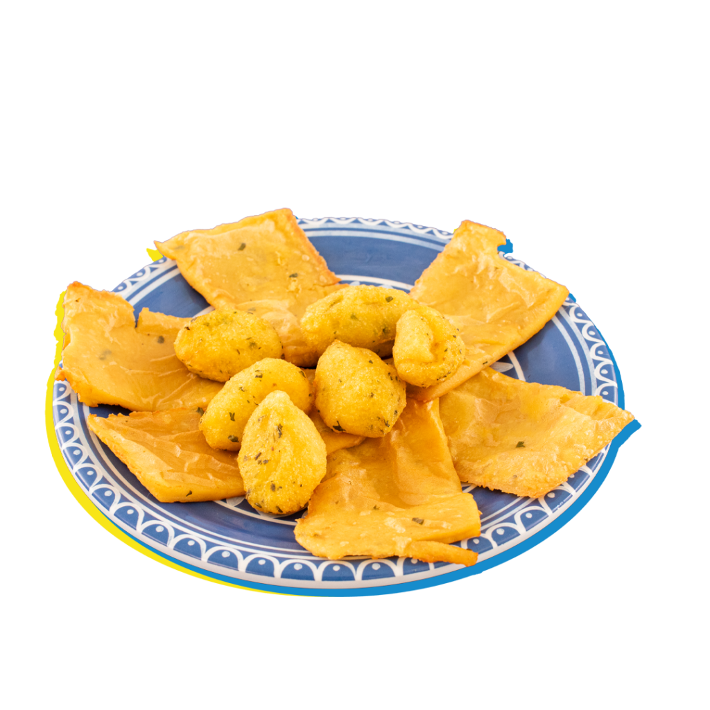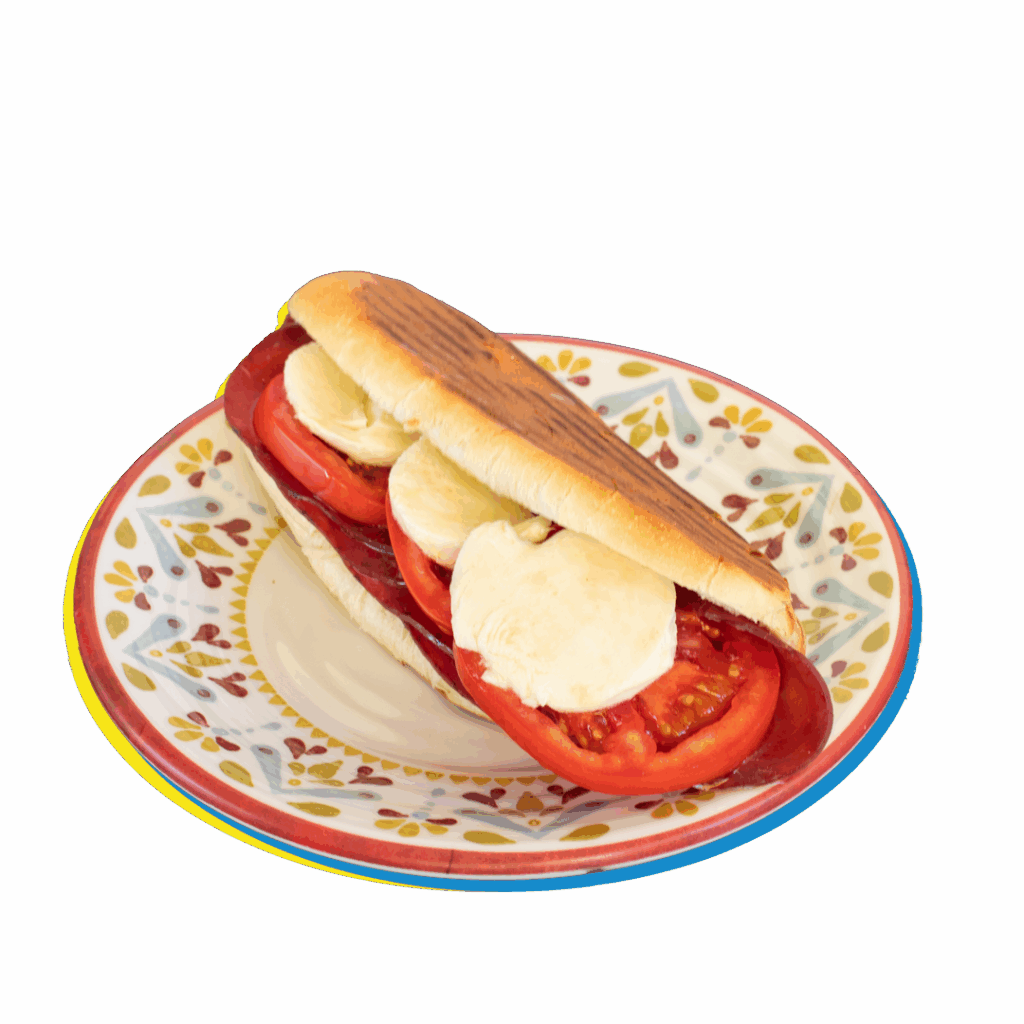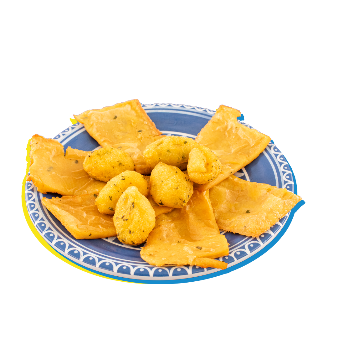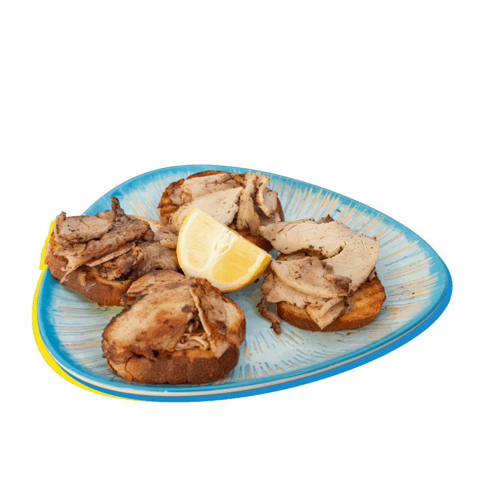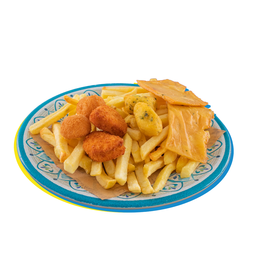 Panelle e crocché, bruschette al pomodoro, sfincione, caponata di melanzane.